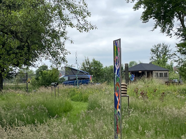 Hij ligt pal naast onze beeldentuin waar je dan heerlijk kunt wandelen maar ook een leuke zit plek kunt uitzoeken op elke moment van de dag.